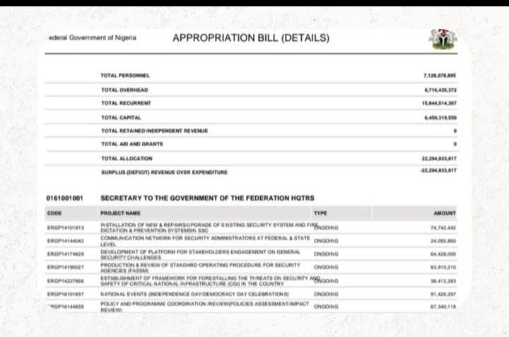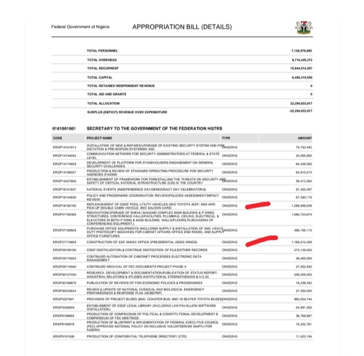 A review of Nigeria’s approved 2026 budget by SaharaReporters has revealed that the Office of the Secretary to the Government of the Federation (OSGF) plans to spend N1.1 billion on the construction of an office annex intended to serve as residential quarters for presidential aides.