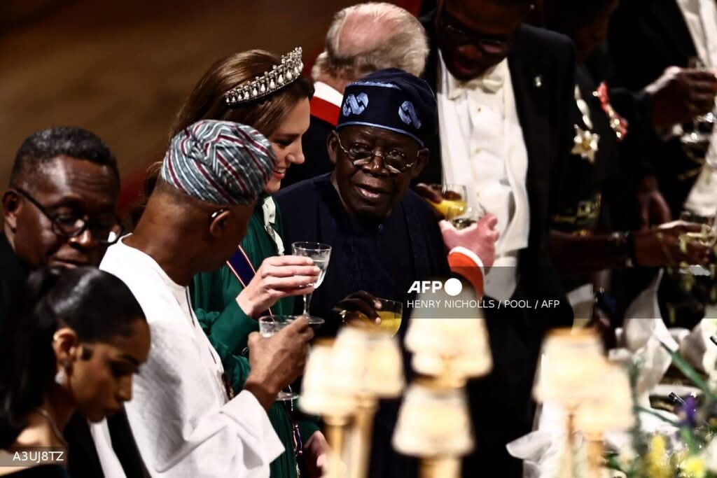 Nigeria’s President Bola Tinubu toasts Britain’s Catherine, Princess of Wales during a State Banquet in in St George’s Hall, at Windsor Castle, in Windsor, on March 18, 2026, on the first day of a two-day State Visit to the United Kingdom by Nigeria’s President. (Photo by Yui Mok / POOL / AFP)