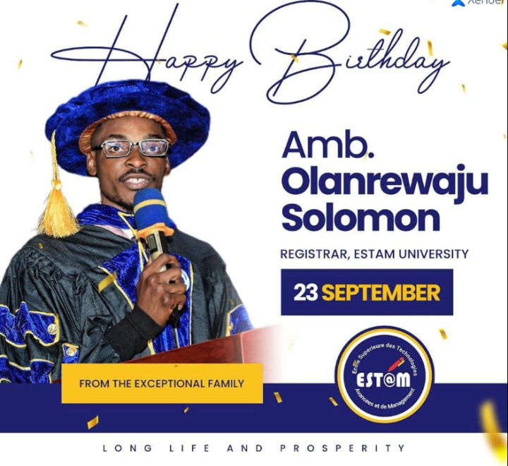 The Registrar of ESTAM University, Ambassador Raji Dresh, is being celebrated today, September 23, by family, friends, associates, and the entire university community as he marks his birthday.
