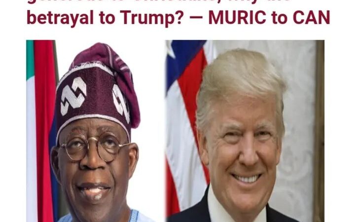 The Muslim Rights Concern (MURIC) has accused the Christian Association of Nigeria (CAN) of disloyalty to President Bola Ahmed Tinubu, alleging that the Christian body betrayed the president despite what it described as his “generous consideration” toward Christians in federal appointments. The accusation follows U.S. President Donald Trump’s decision on Friday to redesignate Nigeria as […]